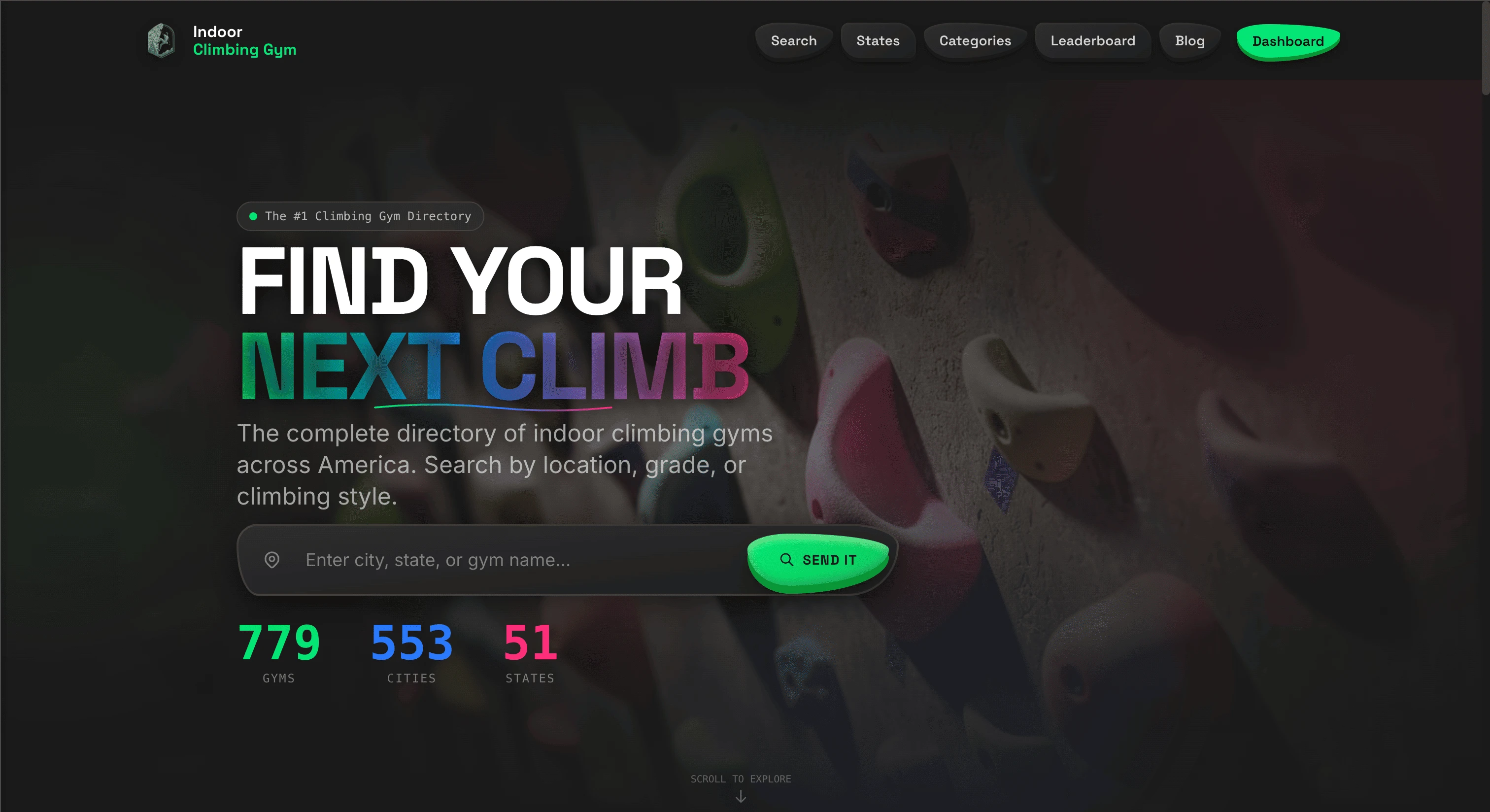 Find the right indoor climbing gym, anywhere.