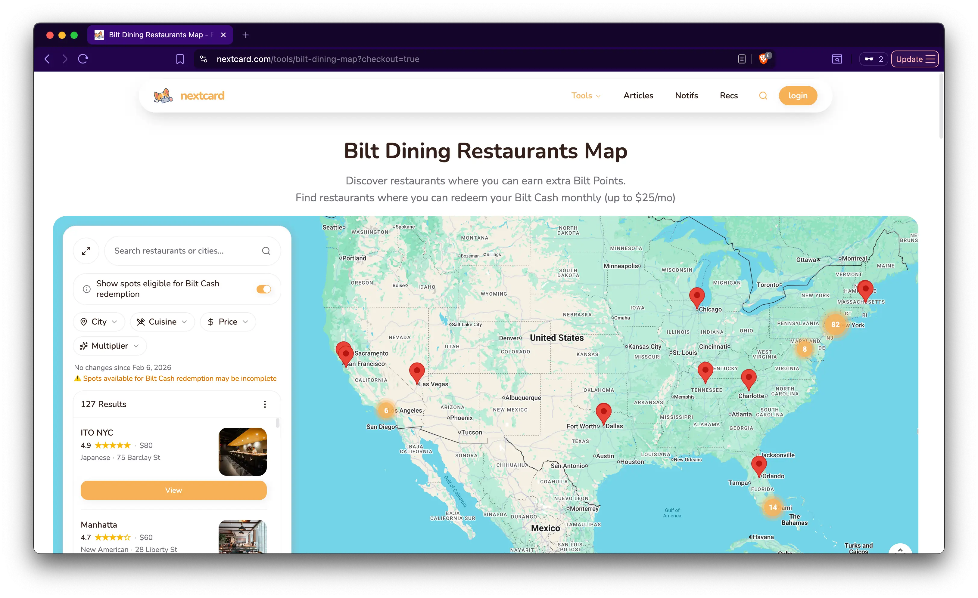 Find Bilt restaurants for monthly Bilt Cash dining credit