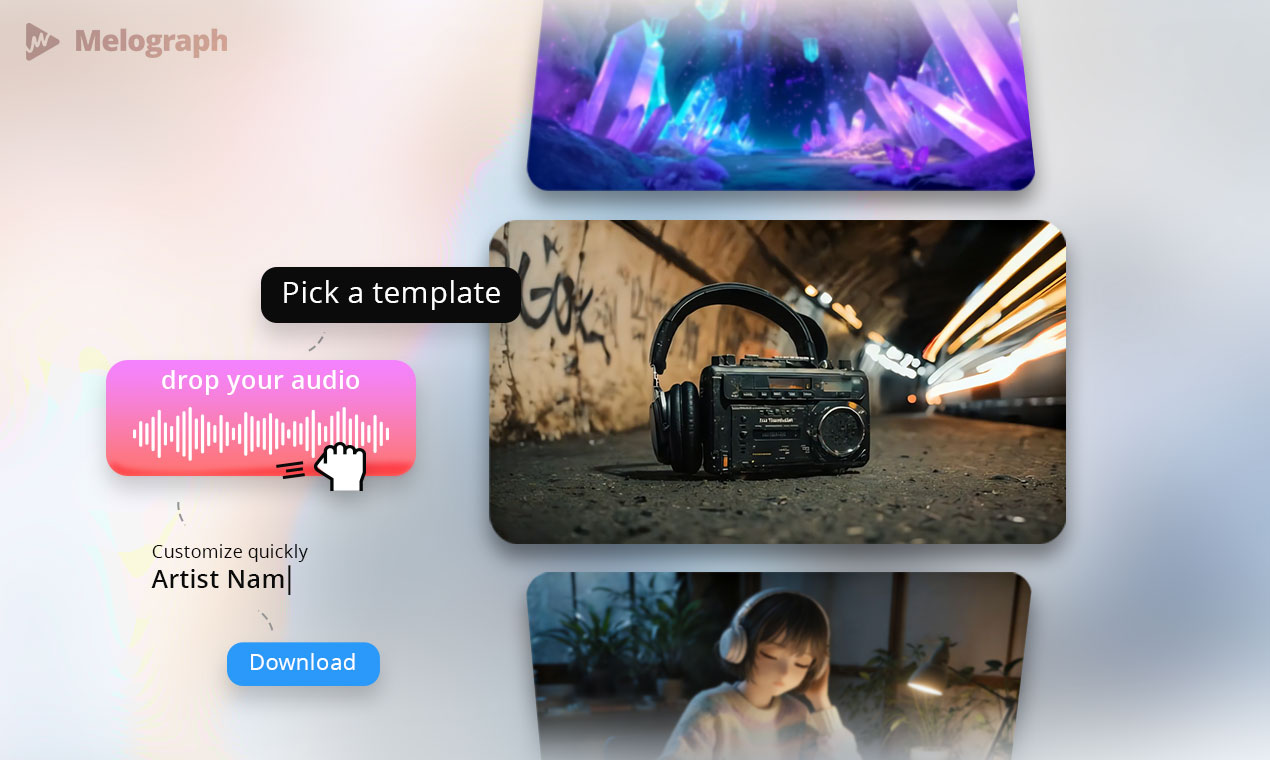 Make premium music visualizers without timeline editing.