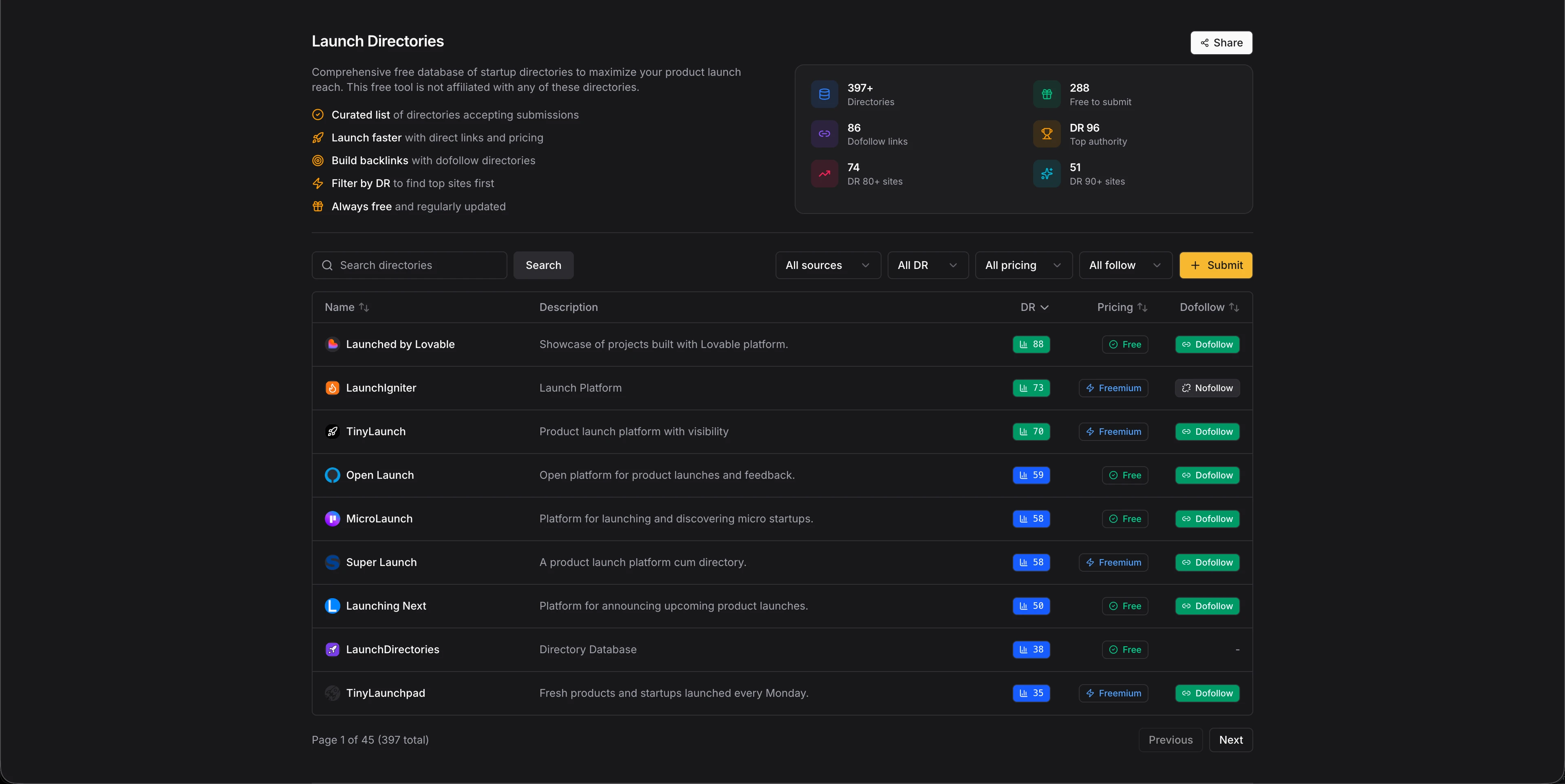 Curated list of directories accepting submissions