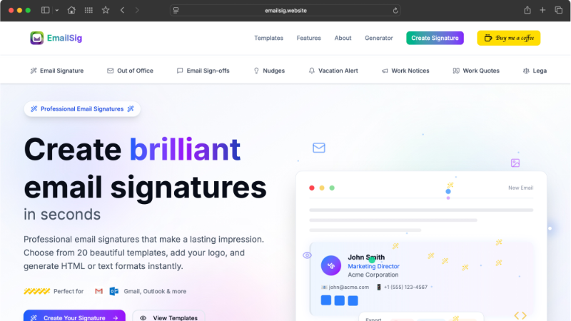 Create stunning email signatures instantly.
