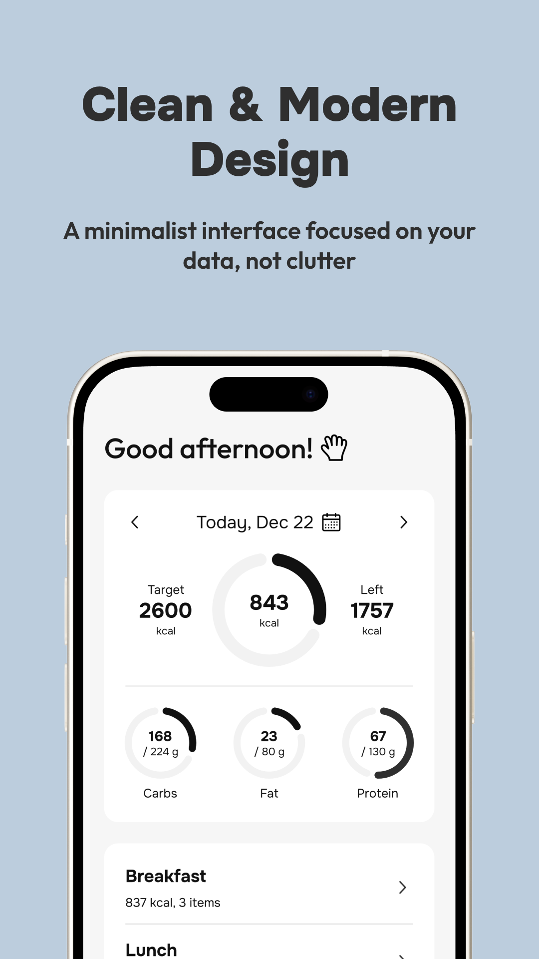 Free calorie tracker. No ads, no paywalls