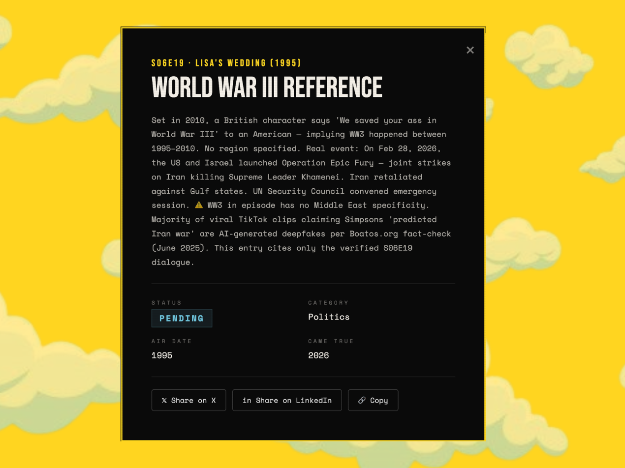 Every Simpsons prediction sourced, scored, fact-checked