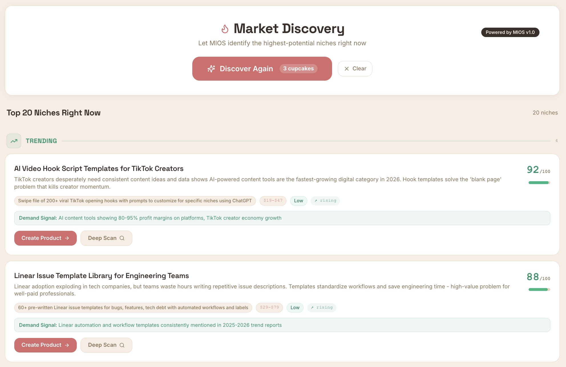 Discover profitable niches and generate digital products
