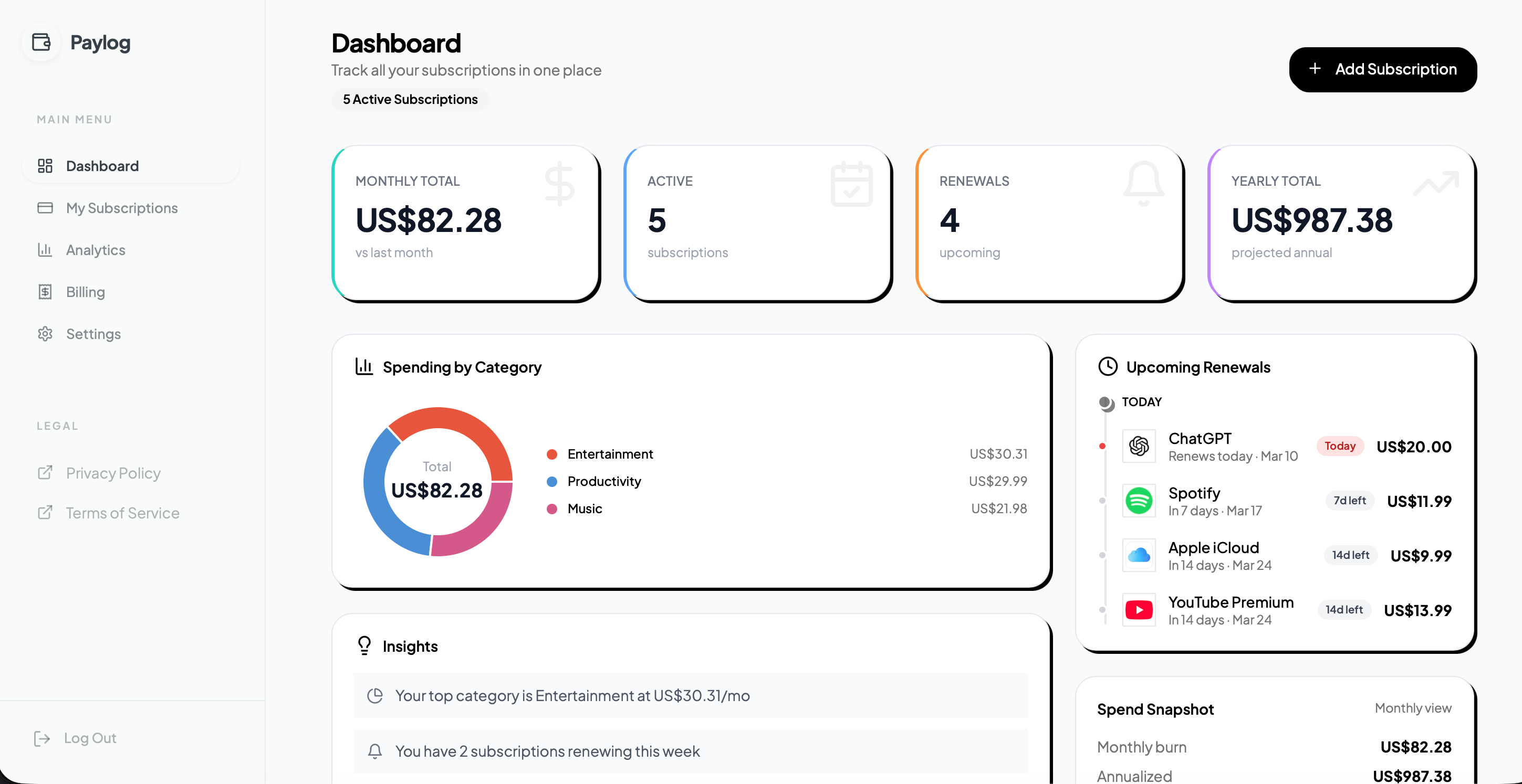 All your subscriptions in one dashboard