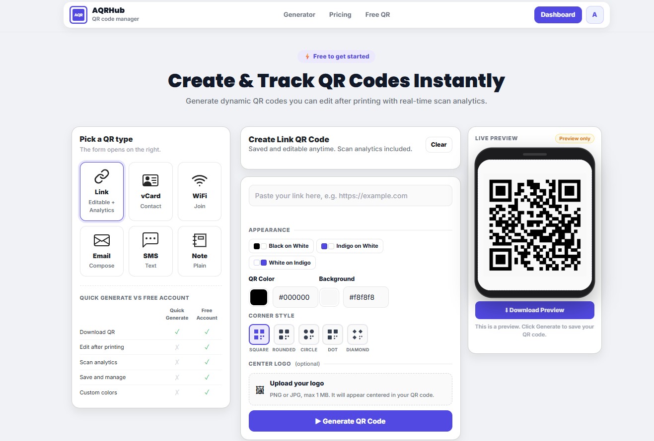 Dynamic QR codes with analytics & custom styles