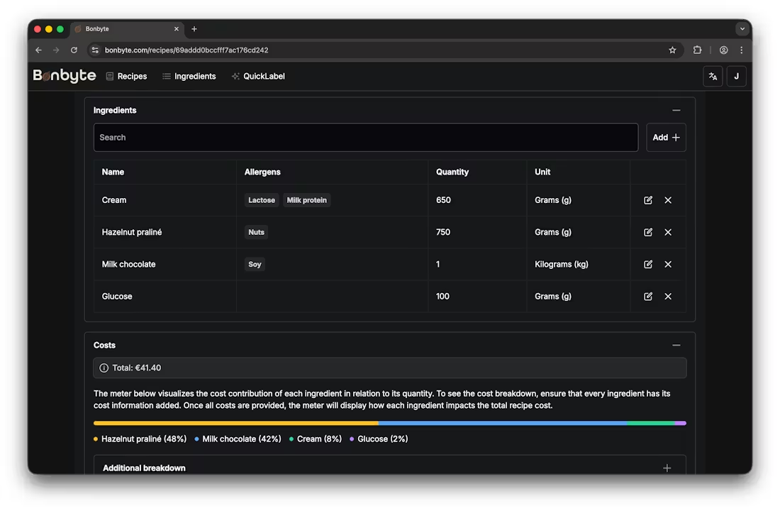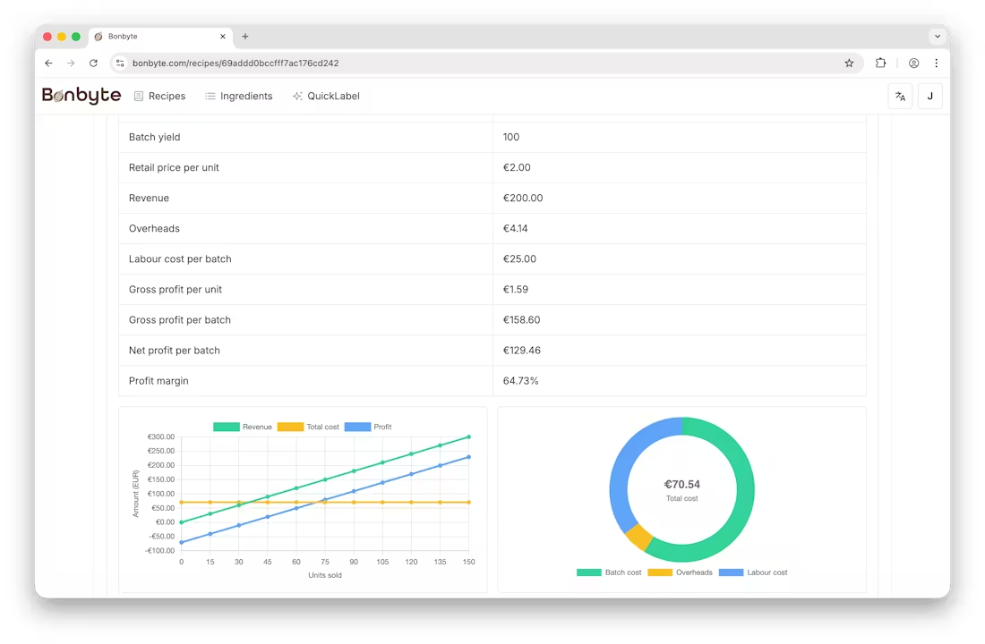 Recipe management, cost insights and labels - all in one