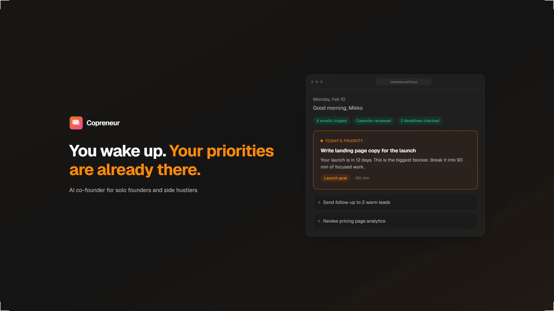 AI co-founder that surfaces your #1 priority every morning