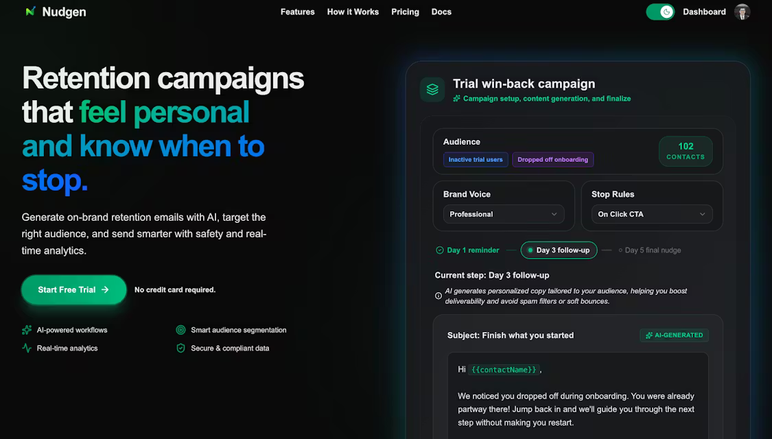 AI retention emails that feel personal, stop on engagement.