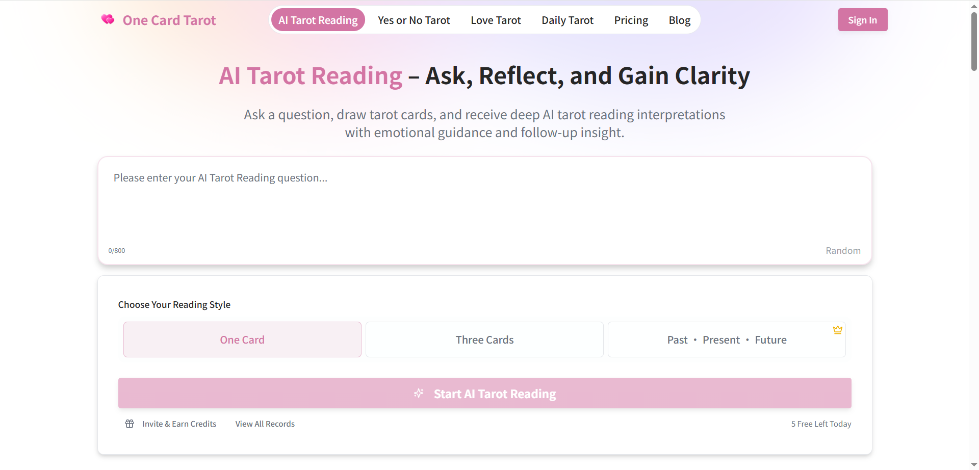 One Card Tarot โ Free One Card Tarot Reading with AI Tarot