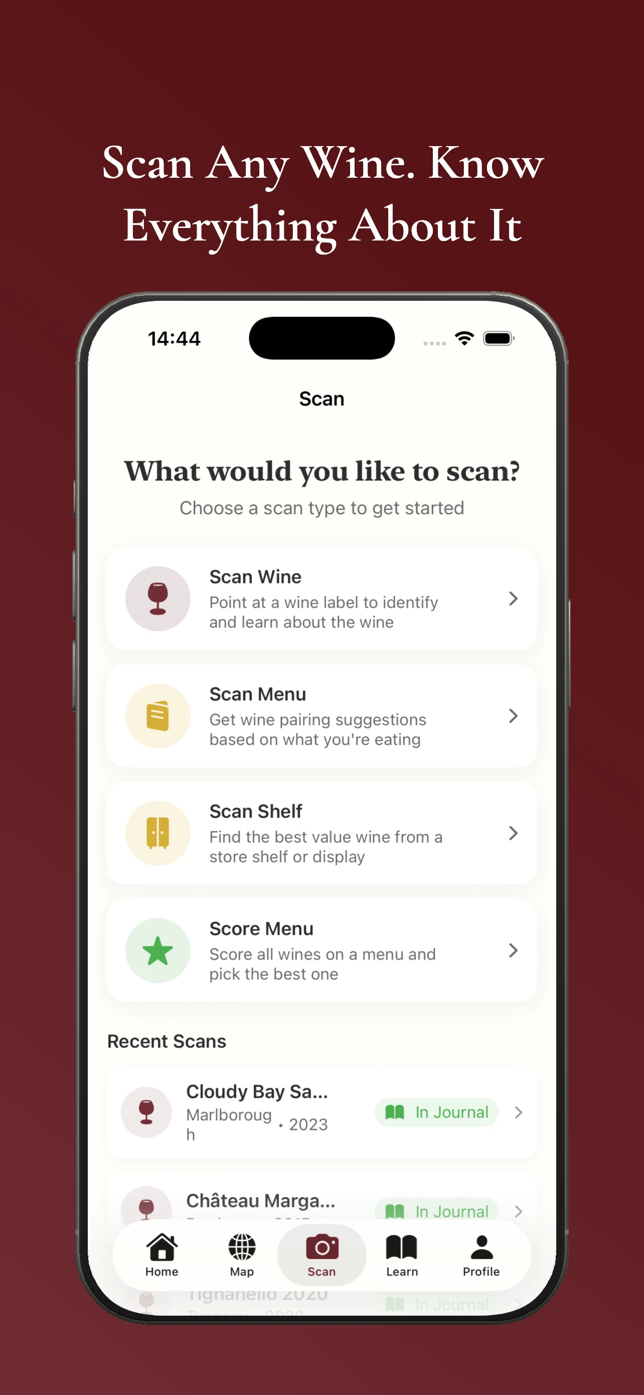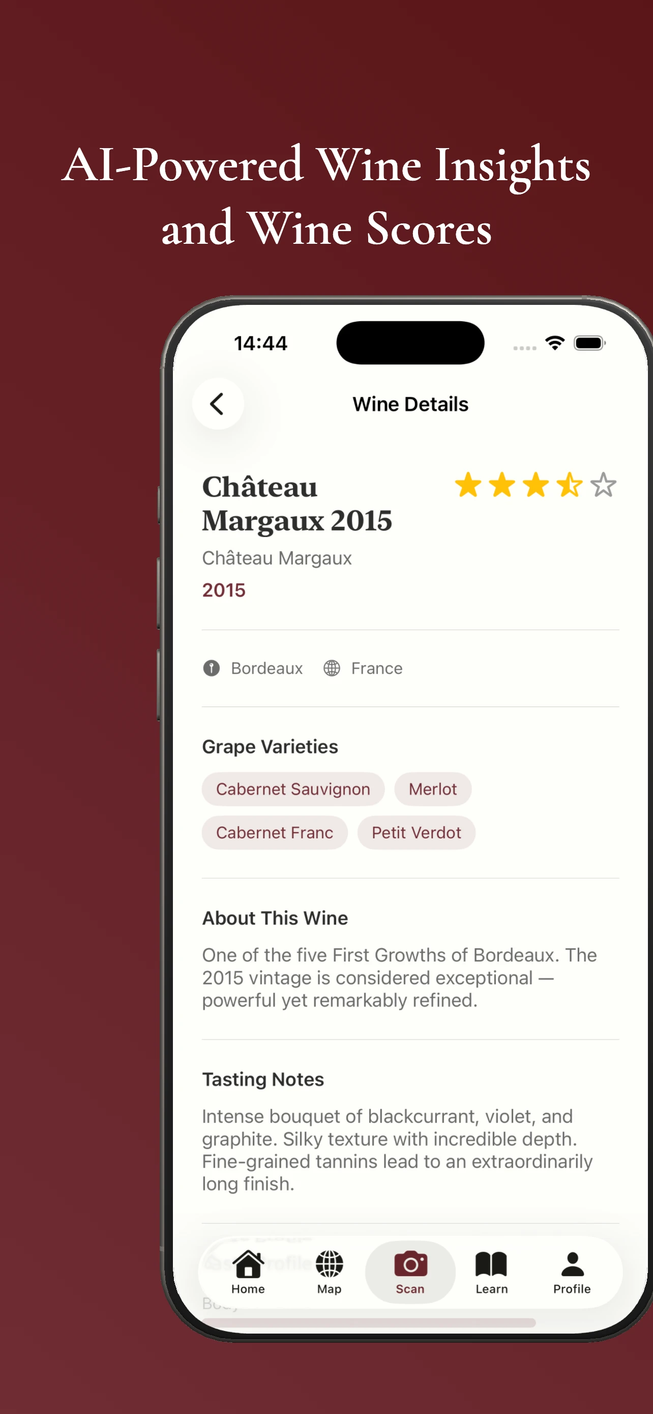 AI wine scanner, cellar, journal & WSET exam prep