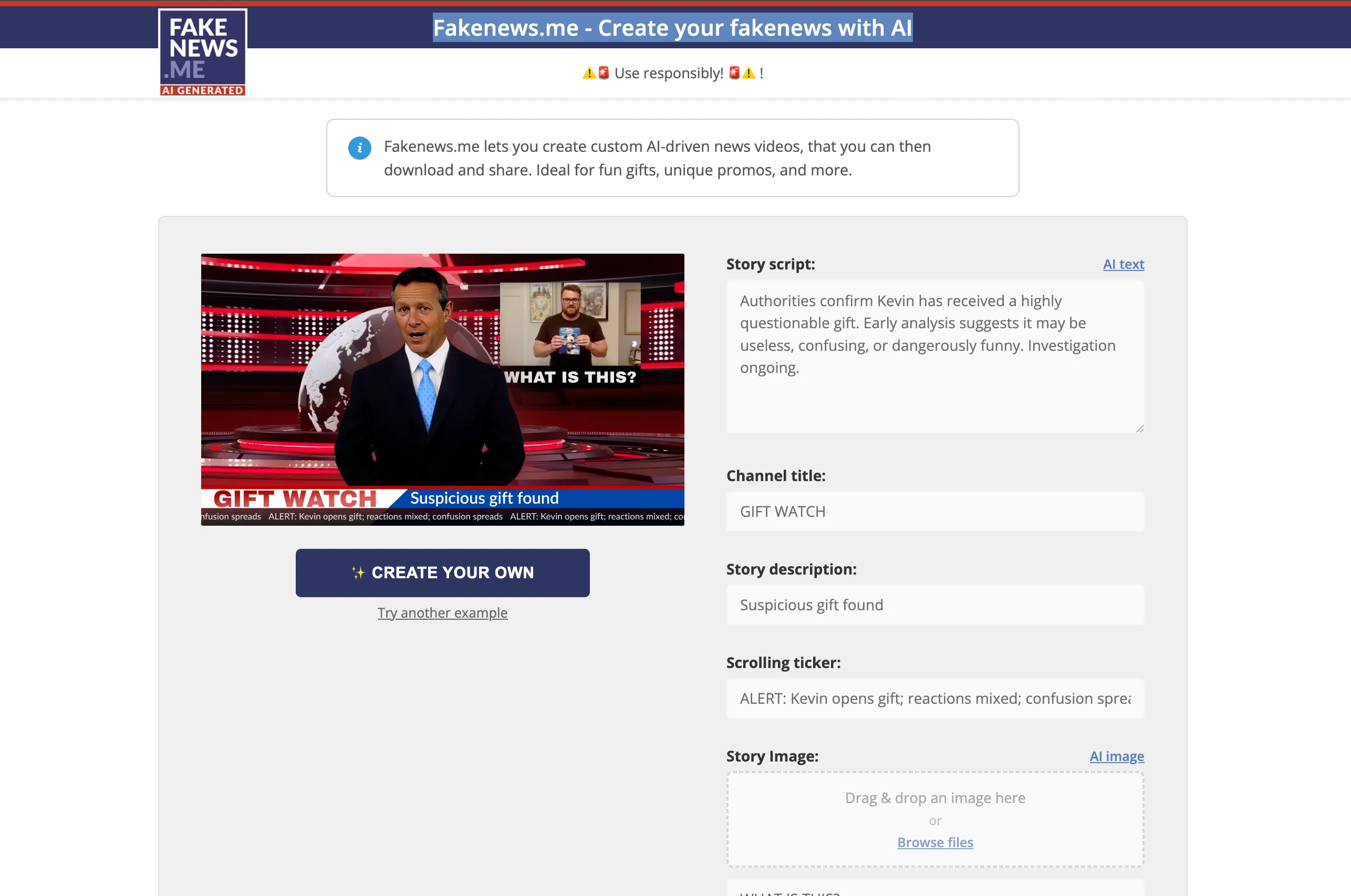 Create AI Fake News Videos for Fun, Pranks & Gifts