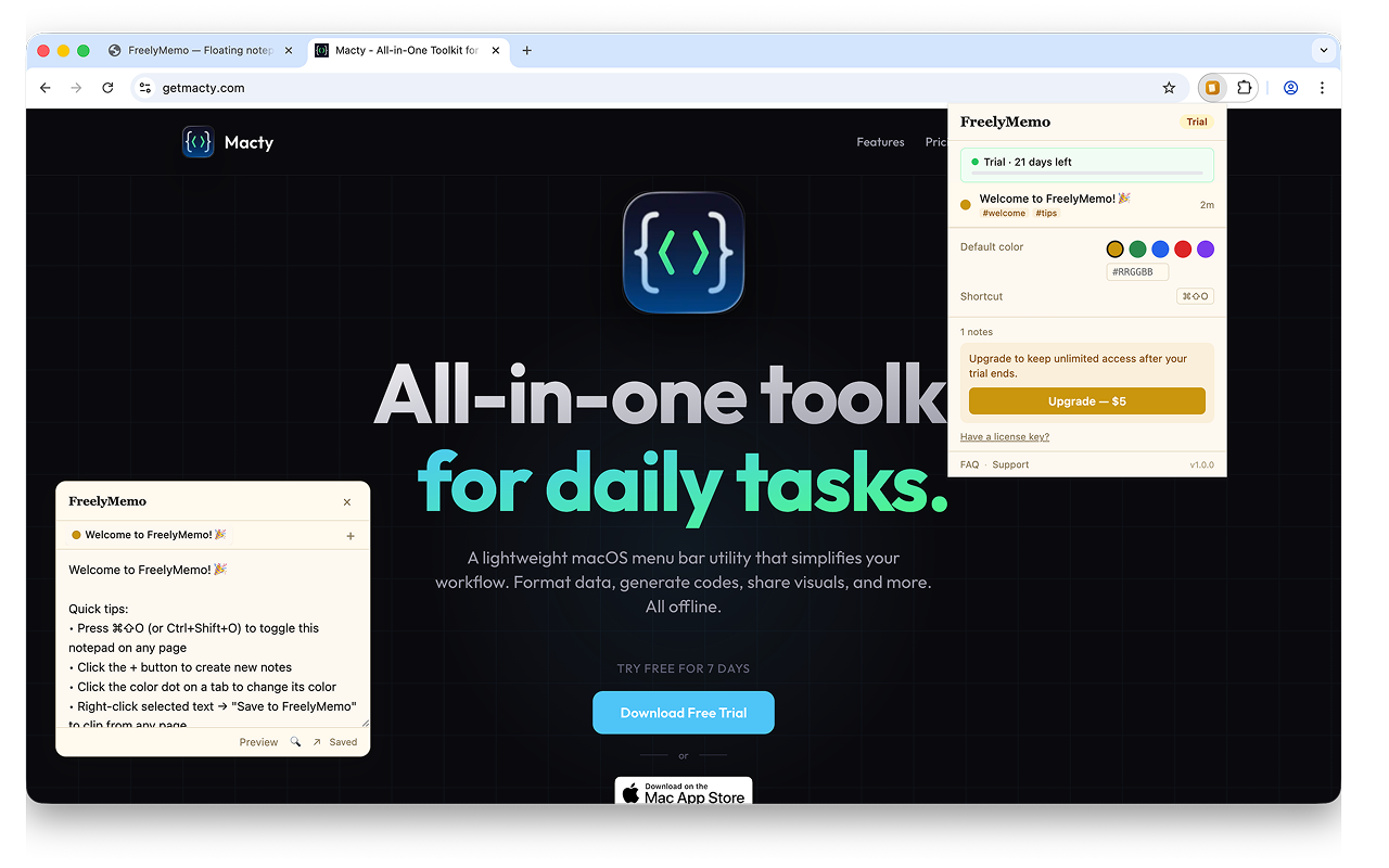 FreelyMemo - A floating notepad on every tab