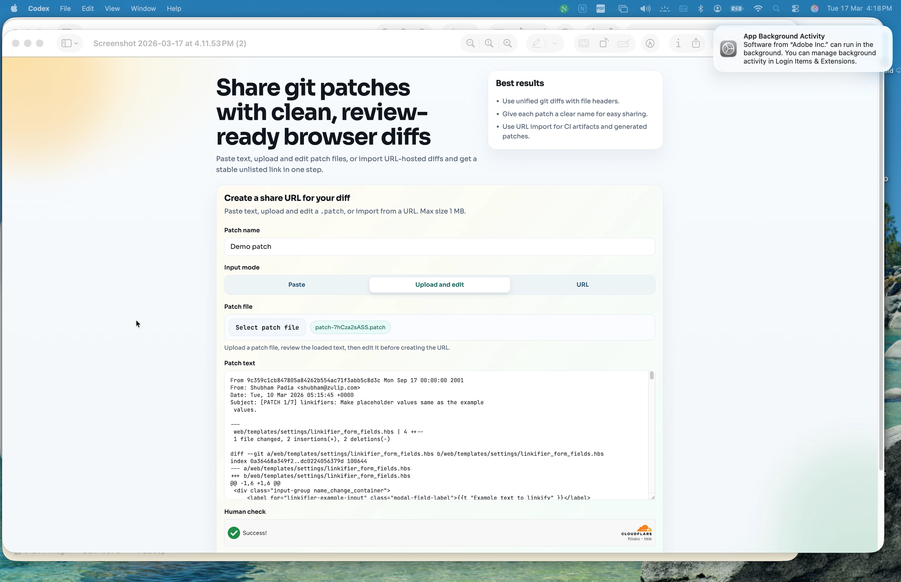 Share git patches | Online git diff viewer