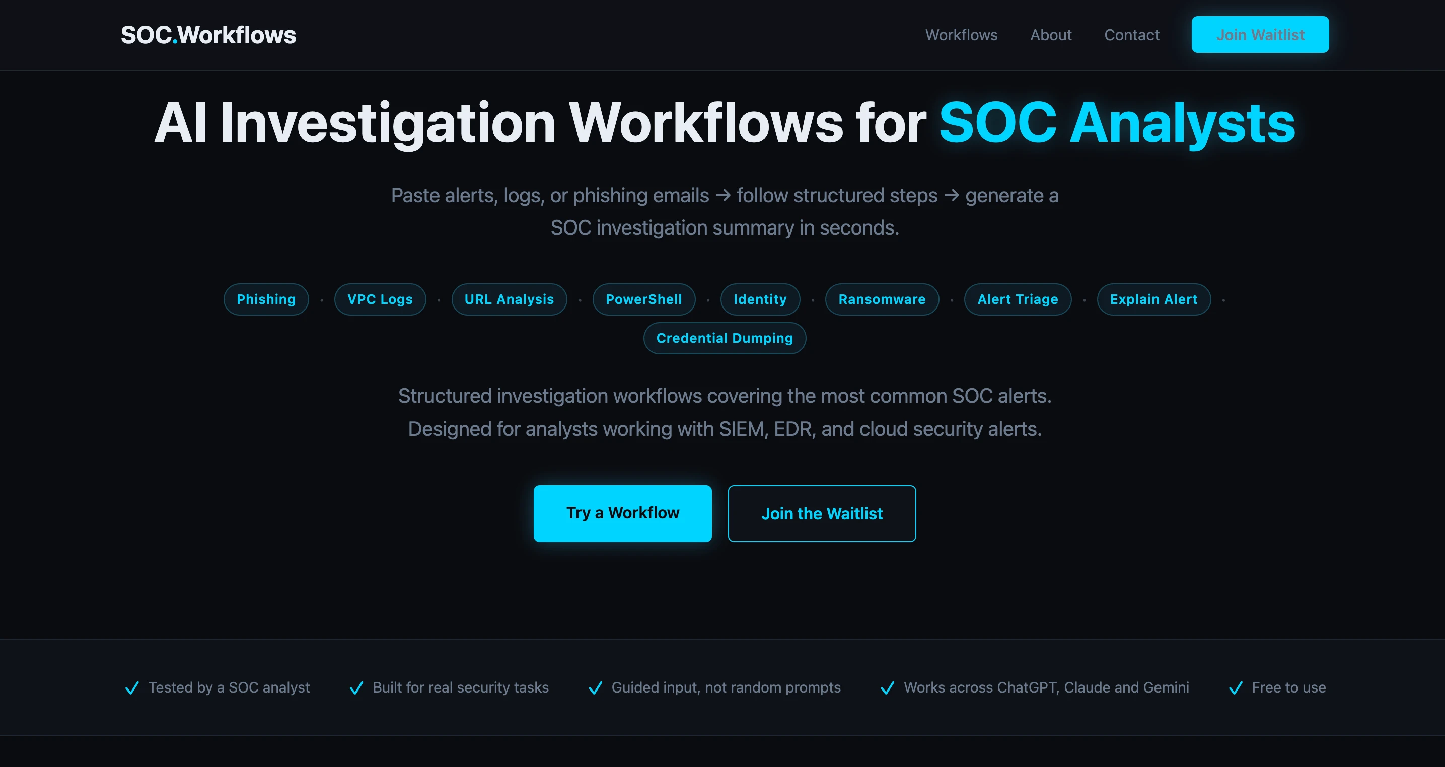 Free AI investigation workflows for SOC analysts