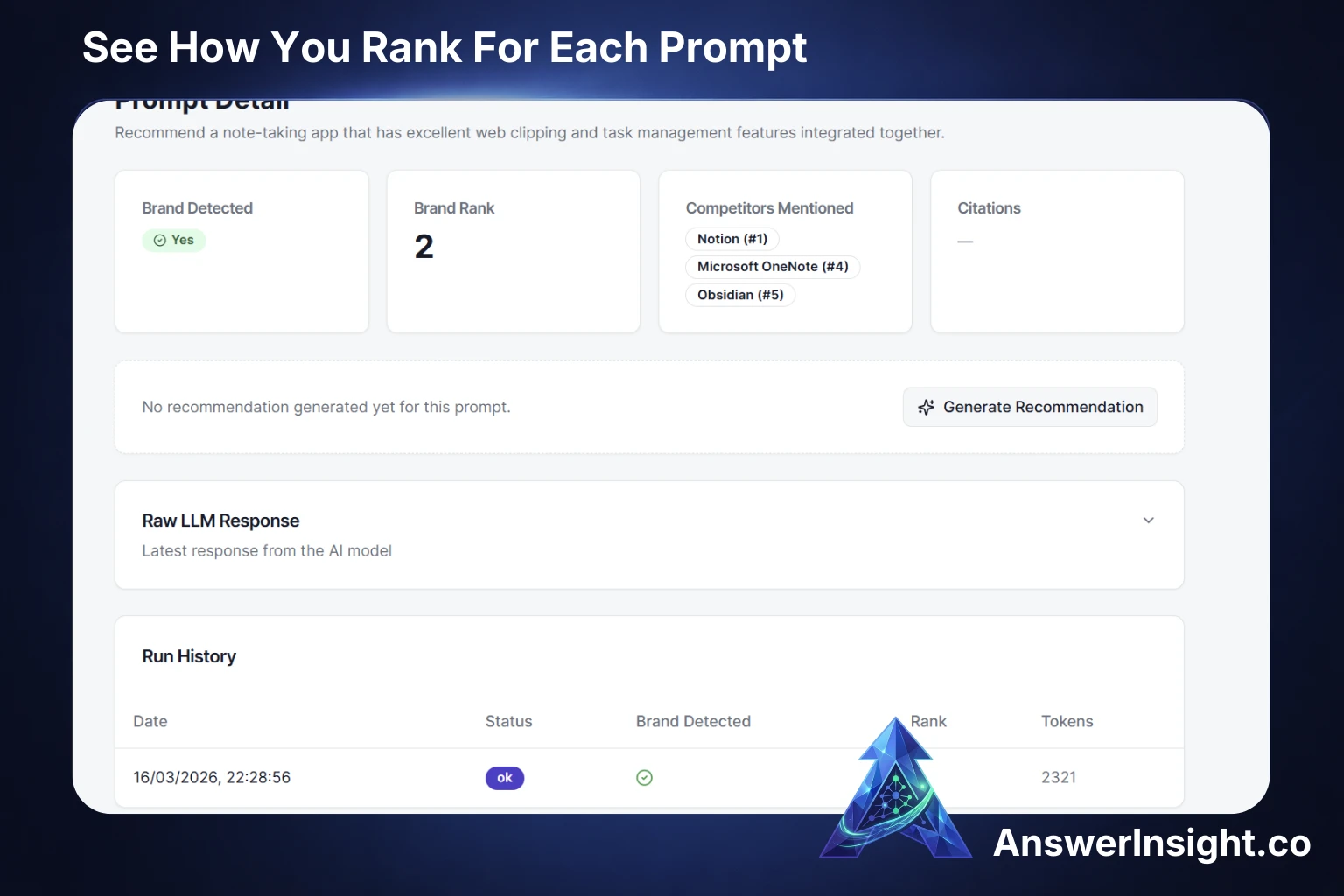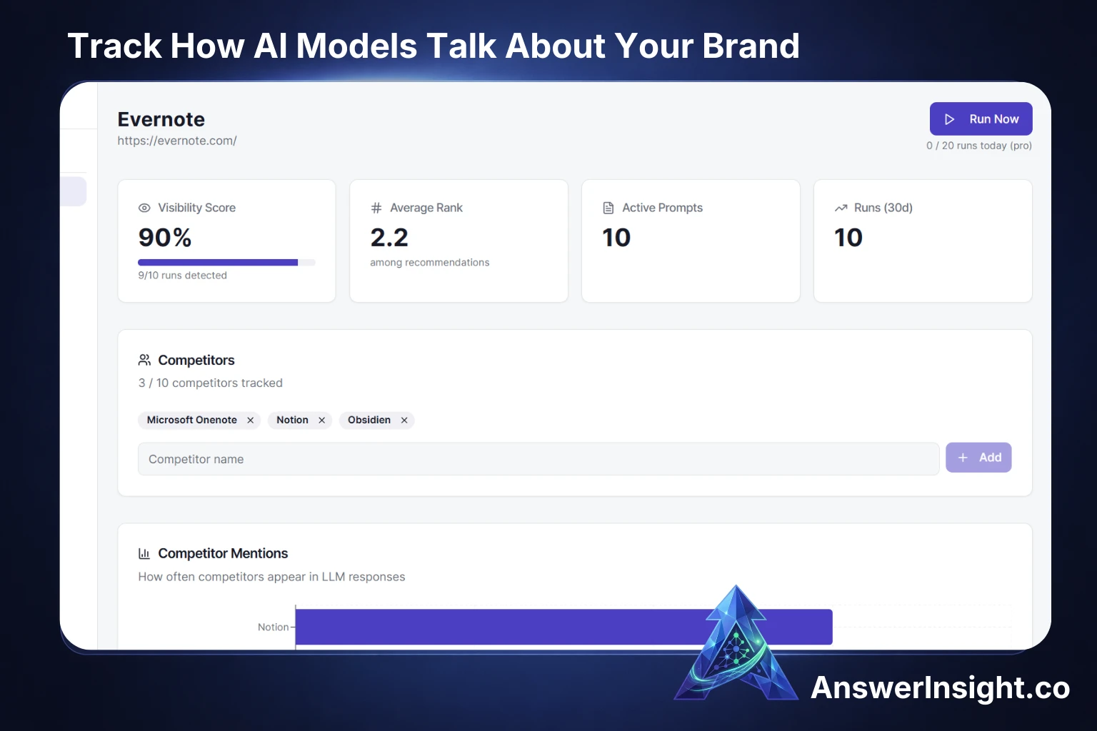 Tracks how your brand appears in AI-generated answers