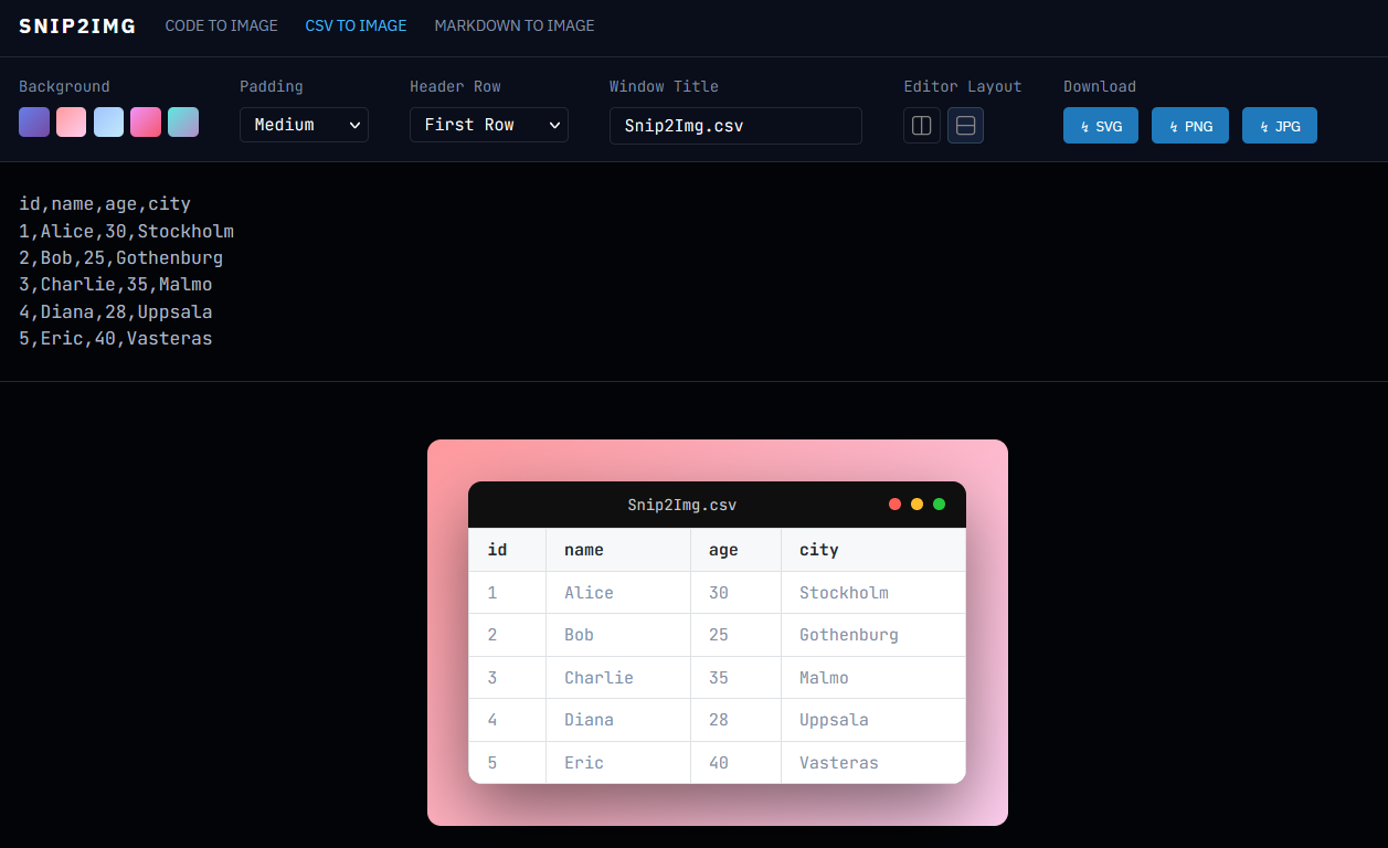 Create Beautiful images from code, csv or markdown text