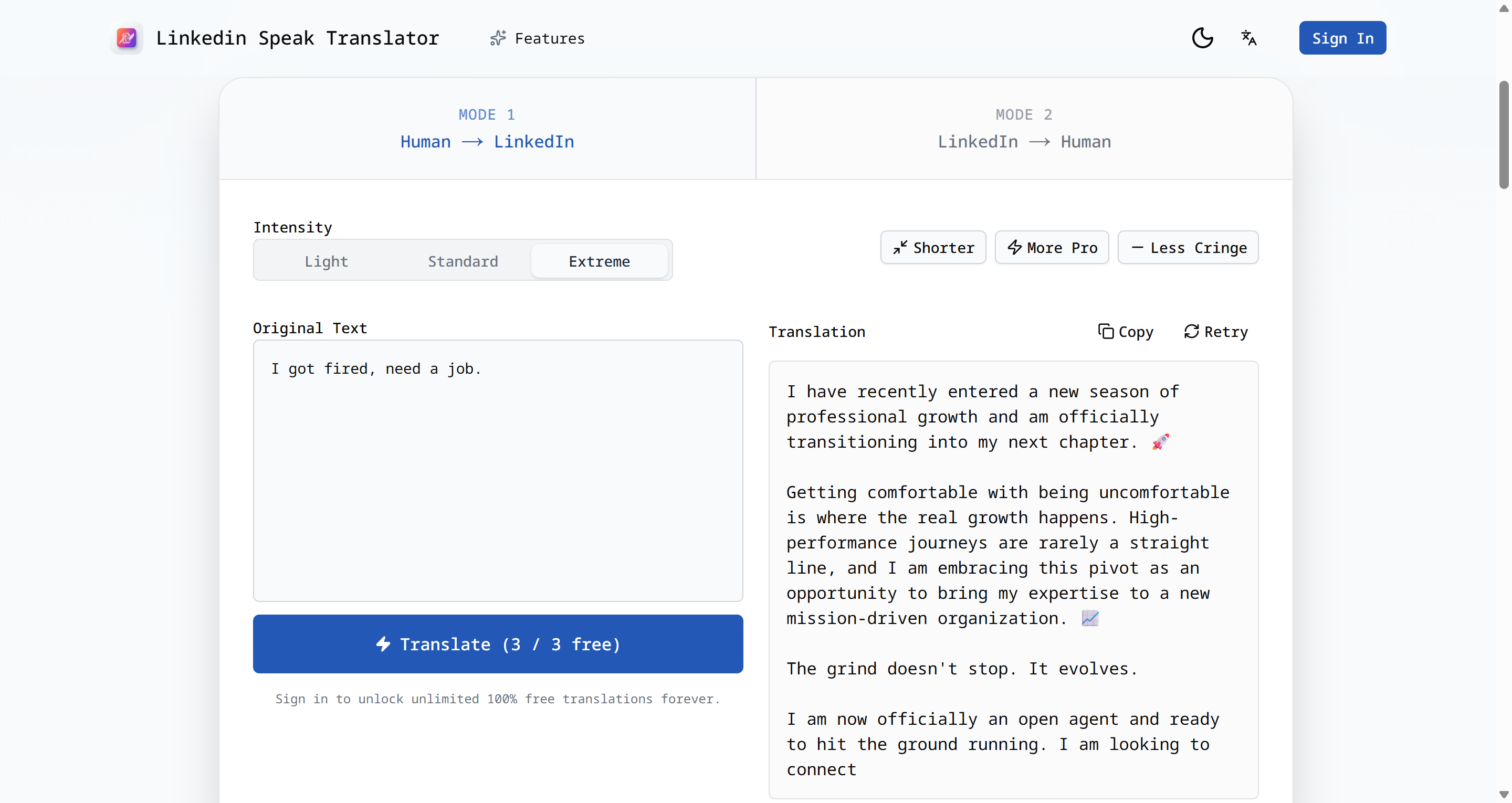 Linkedin Speak Translator