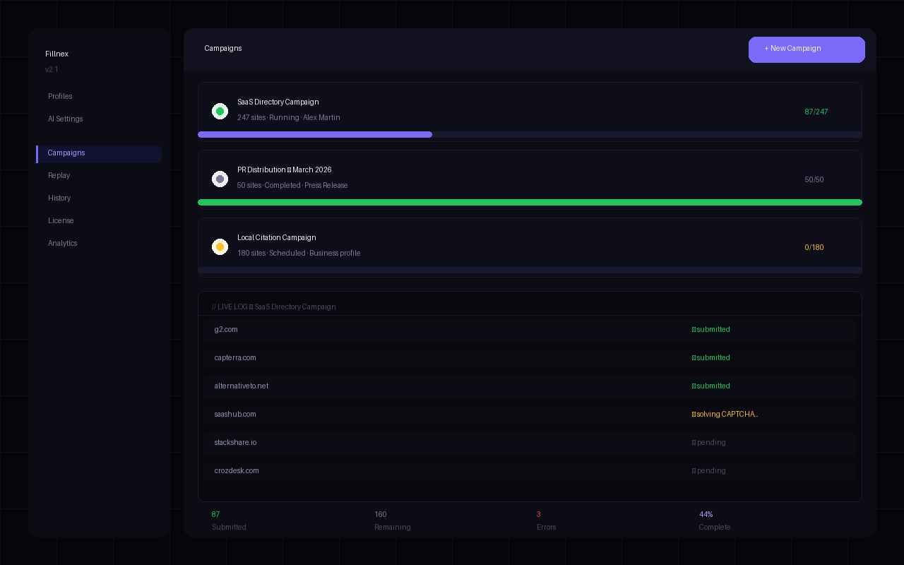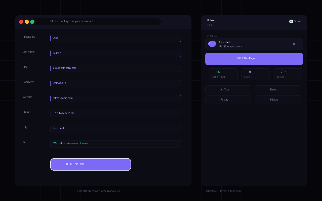 Fillnex โ Fill 500+ web forms automatically