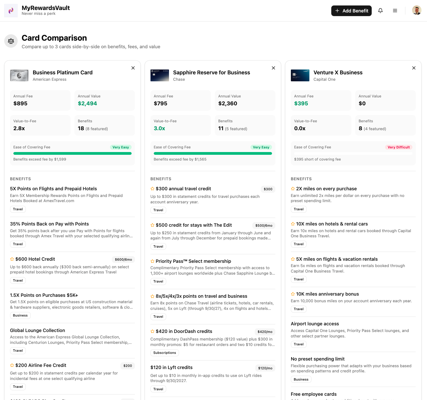 Never miss a credit card or membership benefits