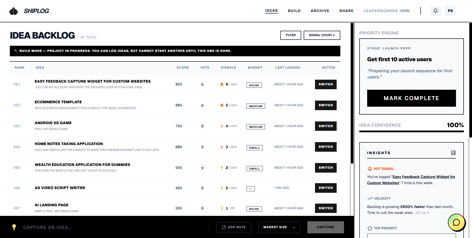 Stop forgetting ideas. Start shipping them.