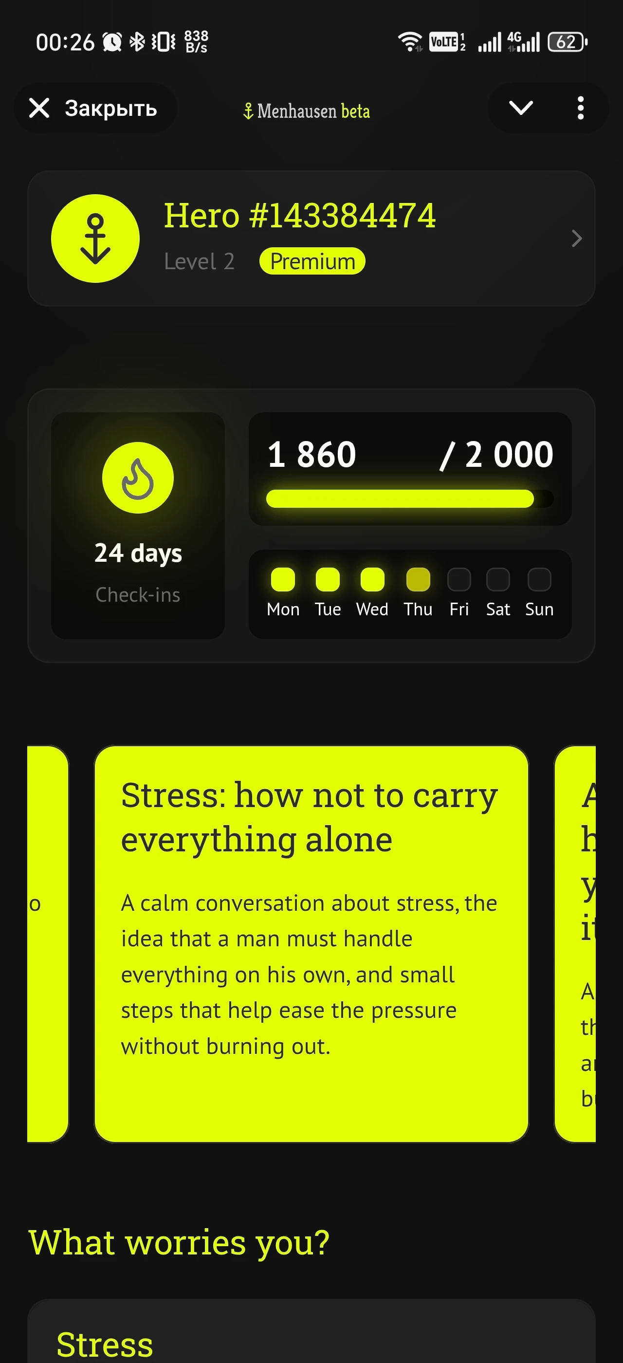 Anonymous digital stress-management tool for men.