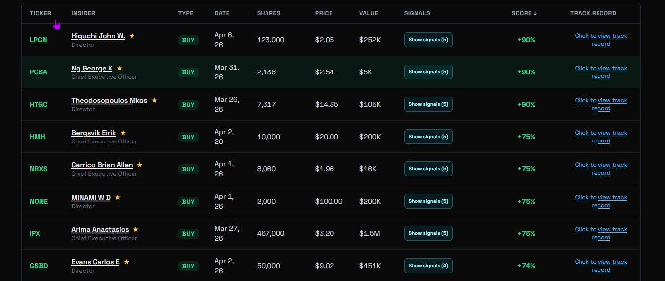 See what insiders are buying before the market catches on.