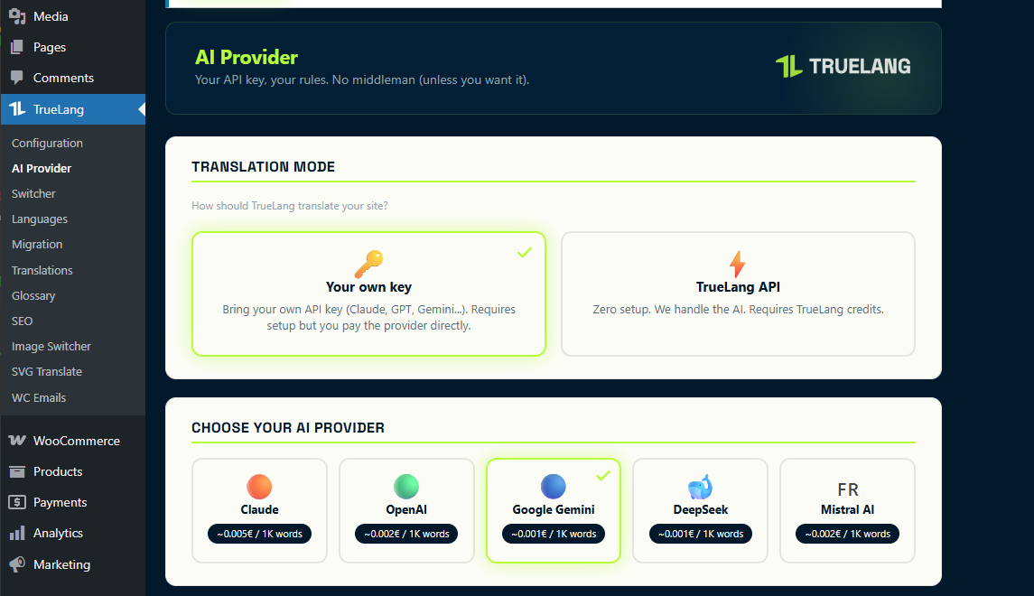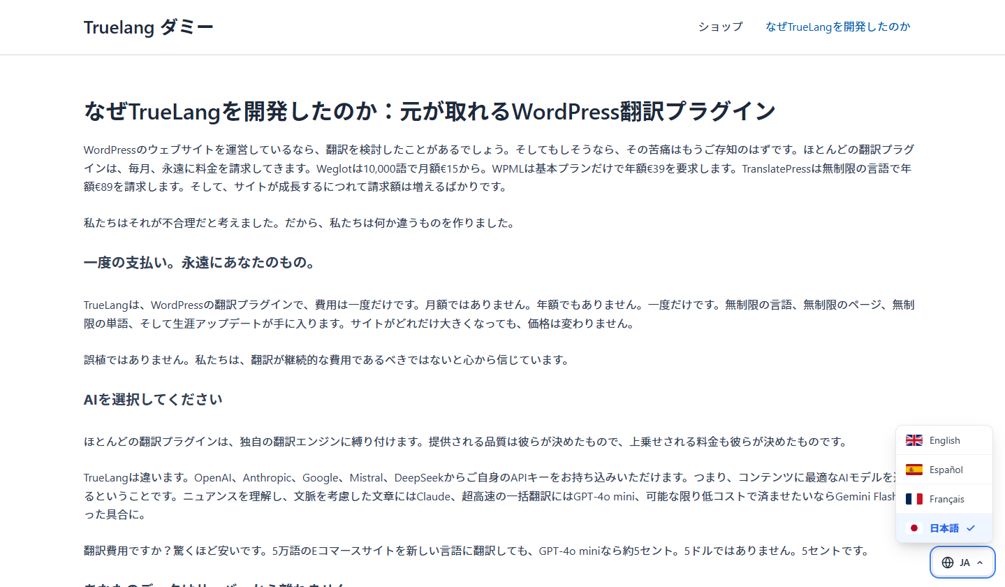 TrueLang - AI WordPress Translation, One-Time Payment