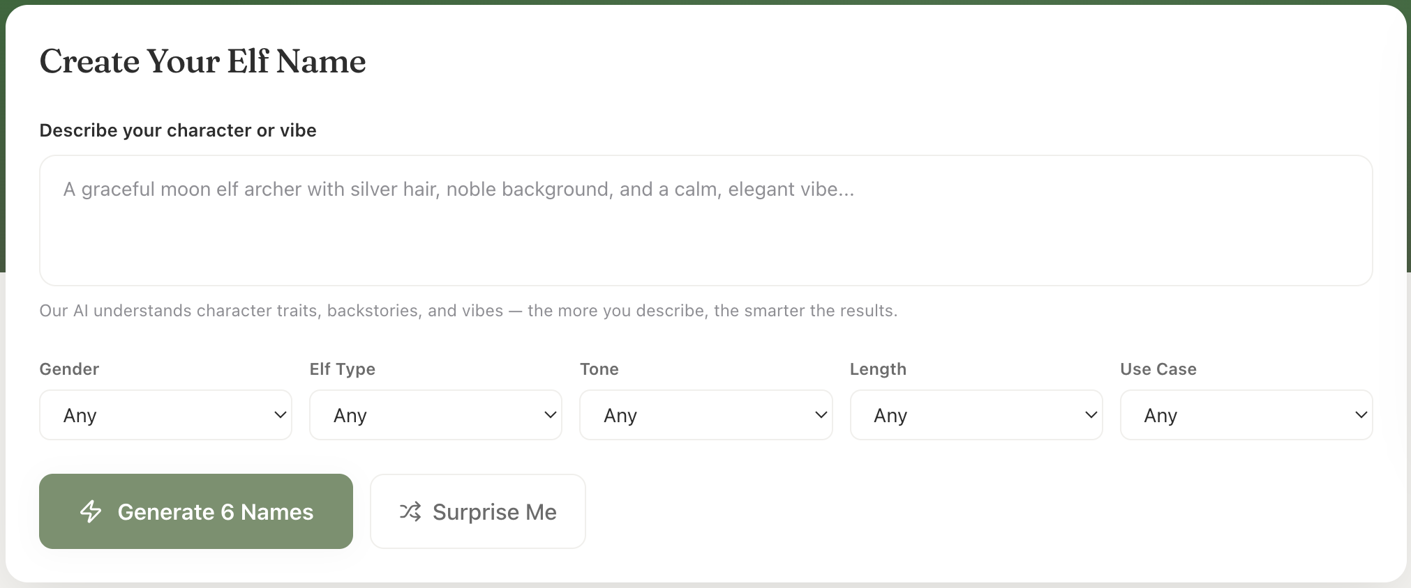 Free AI-Powered Elf Name Generator for D&D & Fantasy RPG