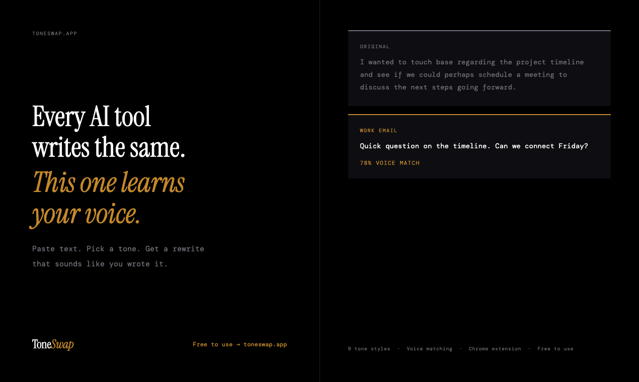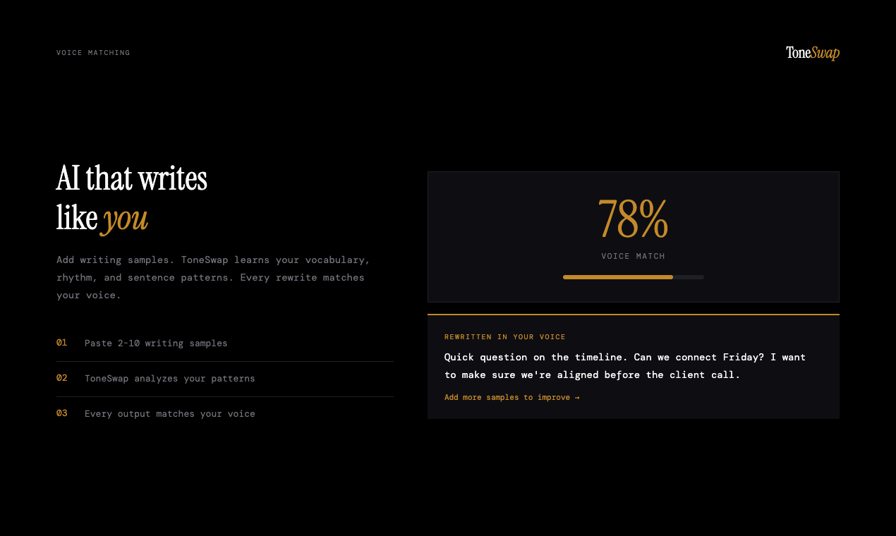 Every AI tool writes the same. This one learns your voice.