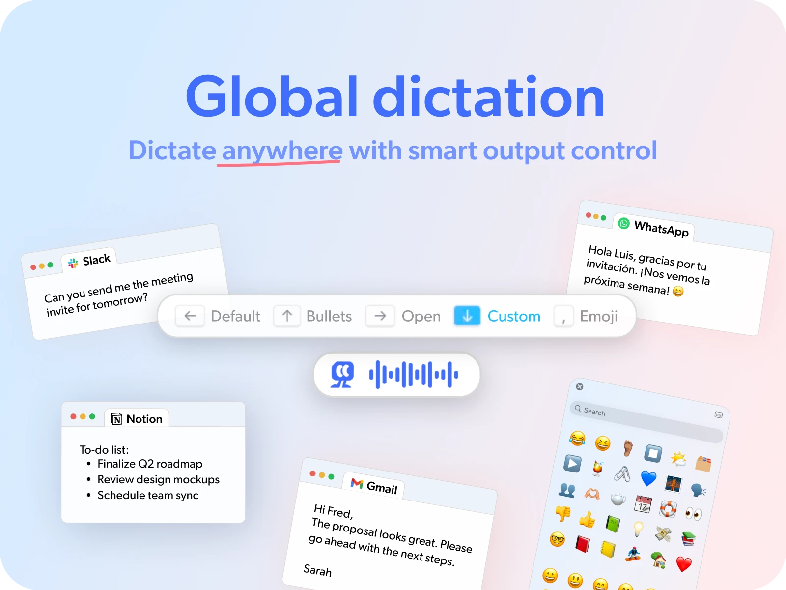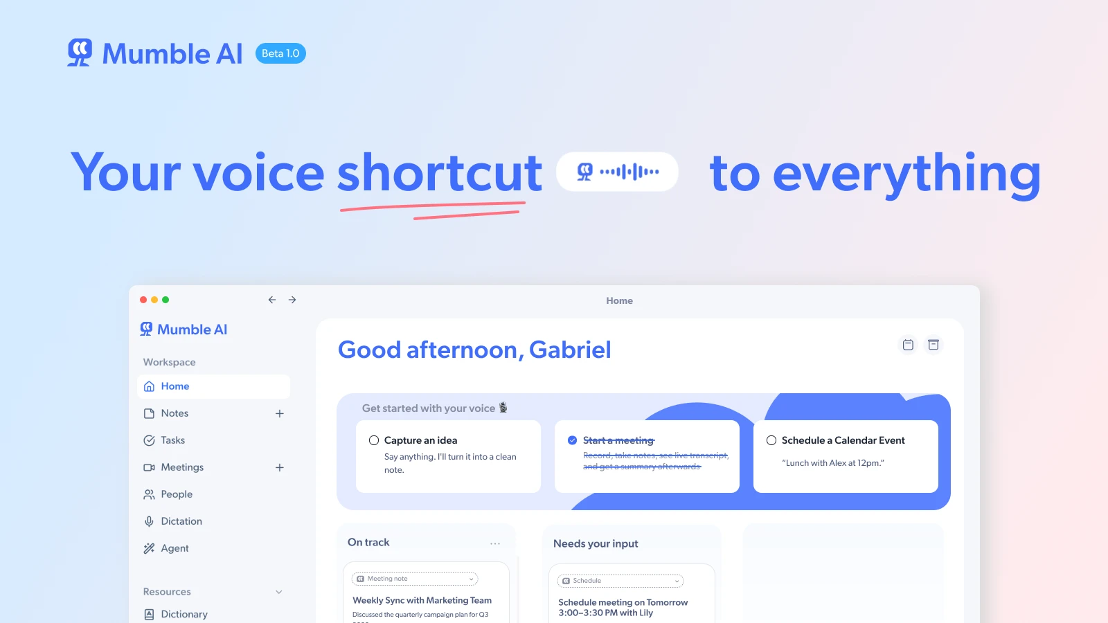 Voice-first workspace for meetings, dictation and agents