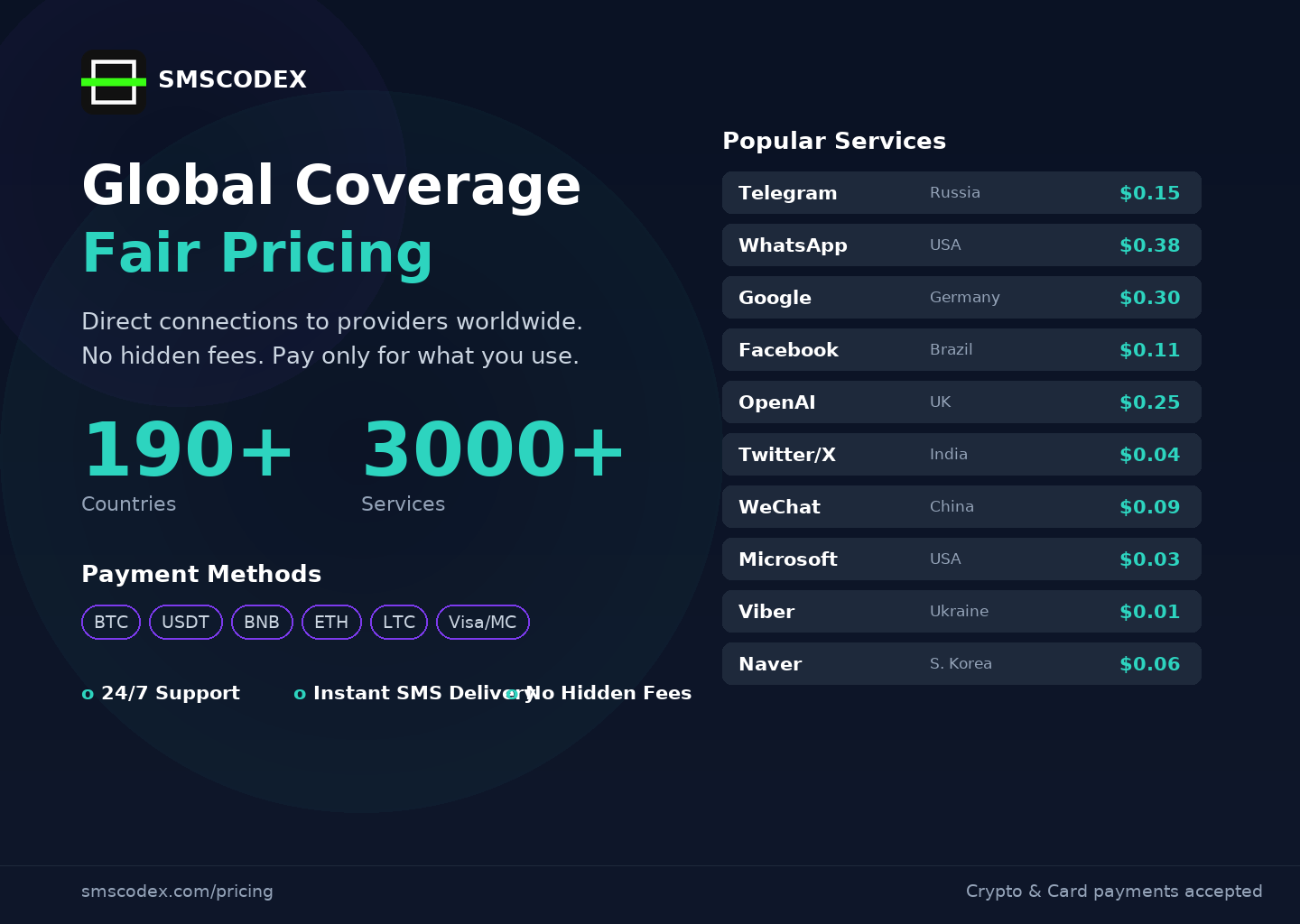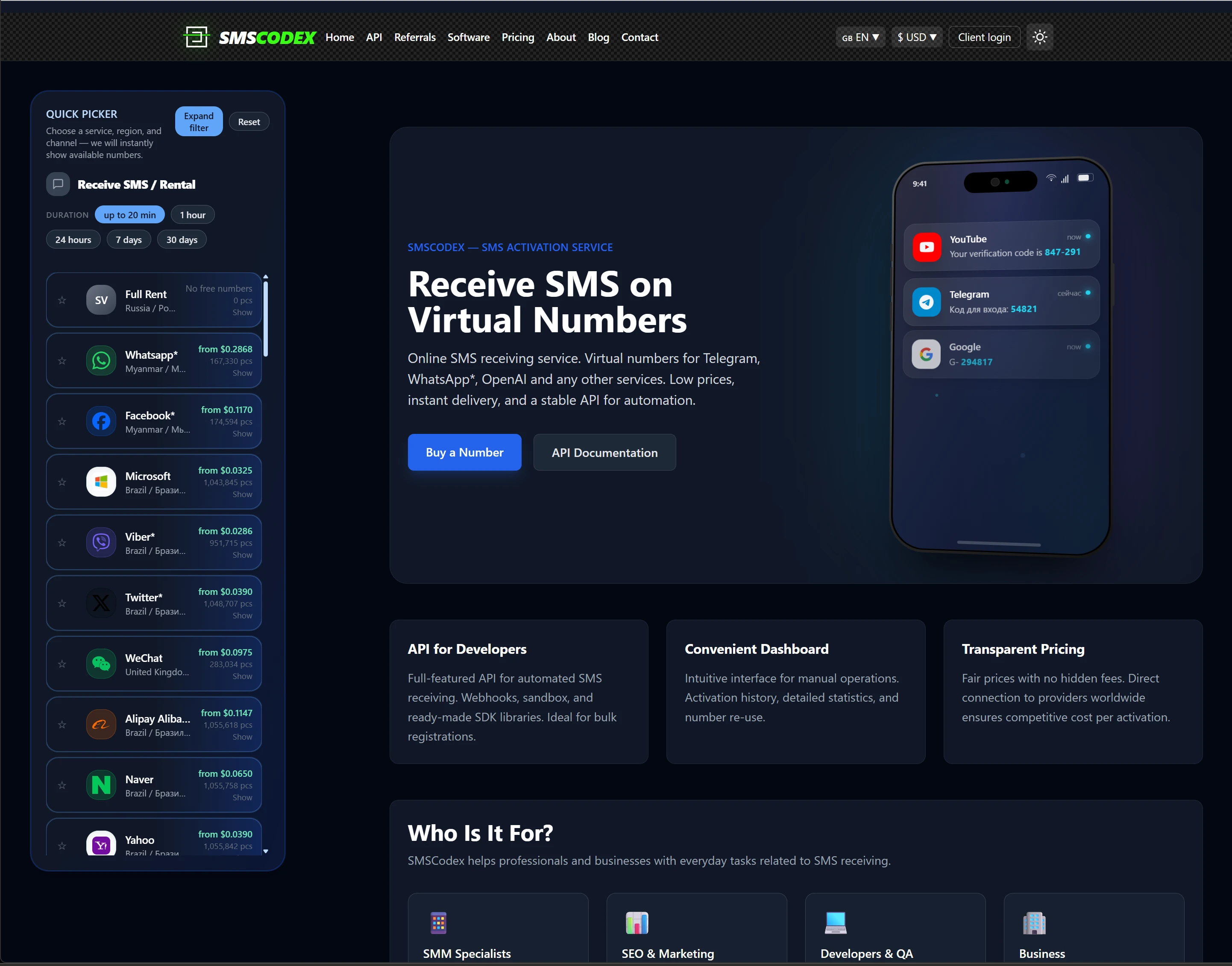 SMS verification API and virtual numbers worldwide