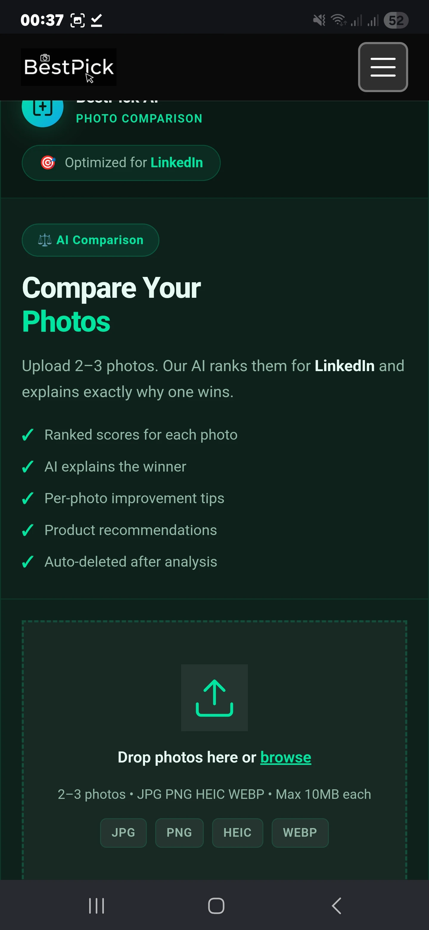 Upload 2-3 photos and let BestPick chooses the best one