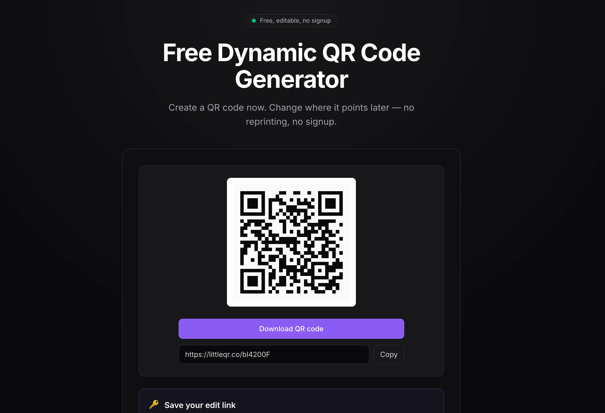 QR codes that update without reprinting. Free forever.