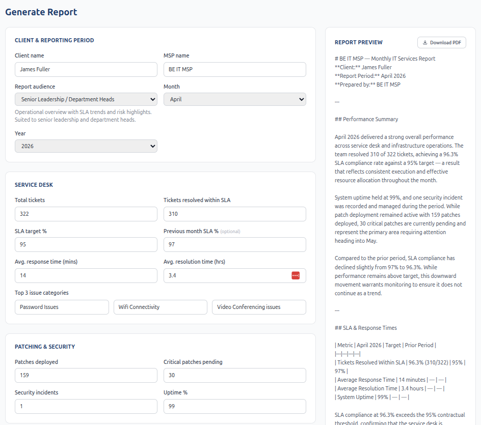 AI-generated client reports for MSPs in minutes