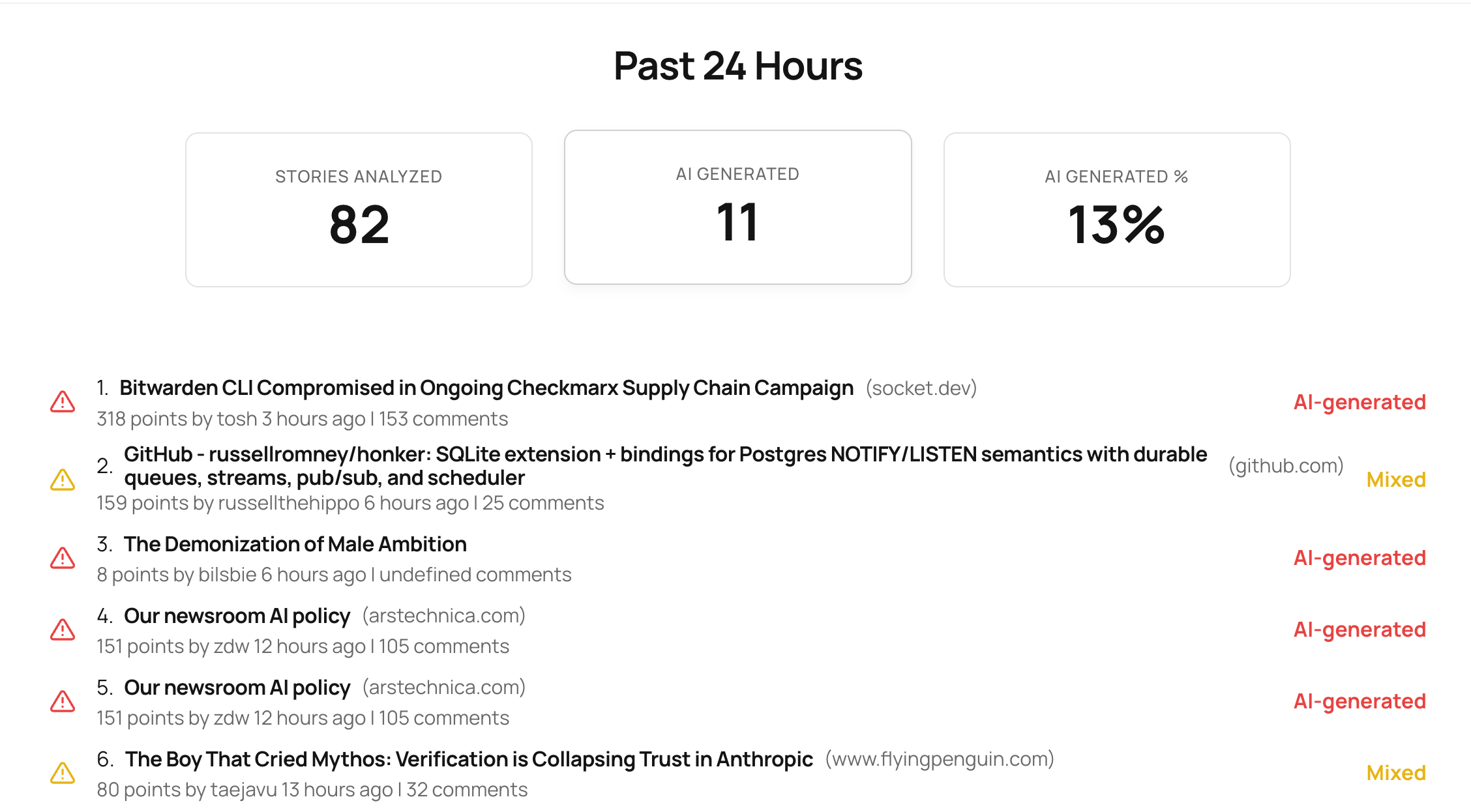 Tool to detect if a Hacker News story is AI-generated.