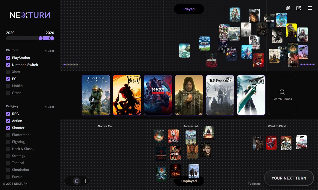 Find your next game by swiping through curated titles.