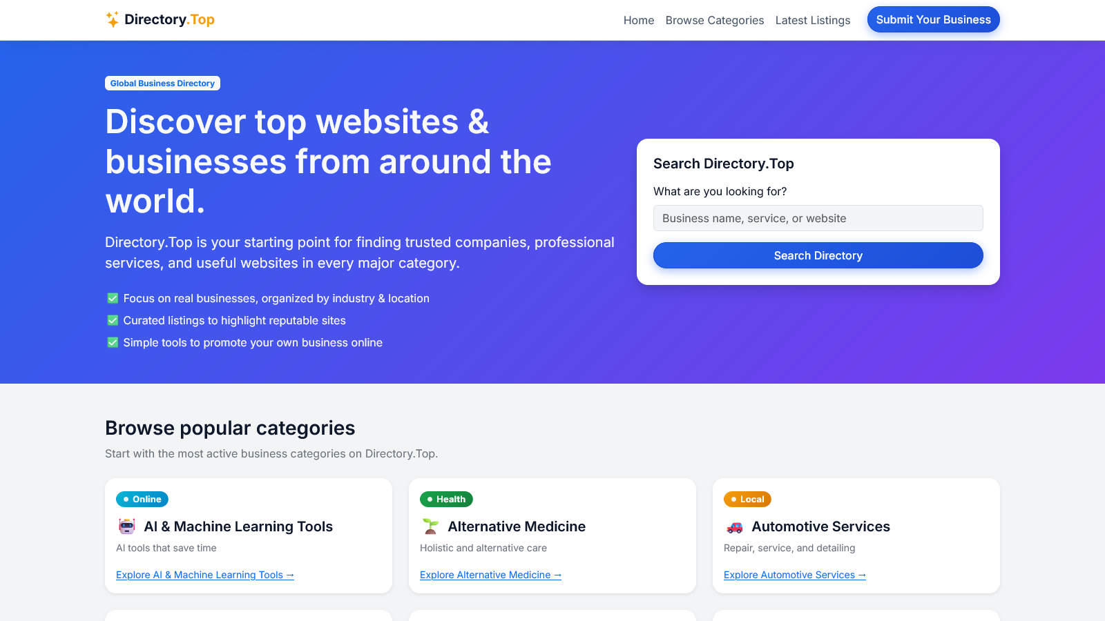 Curated websites, businesses, and online resources.