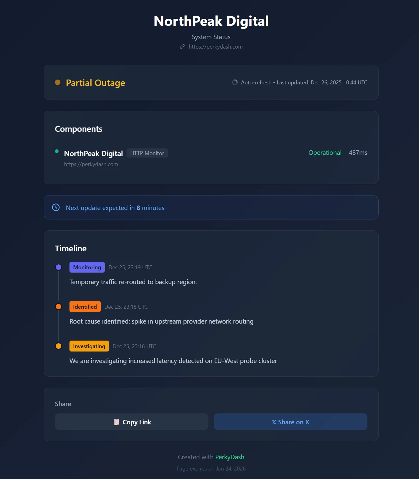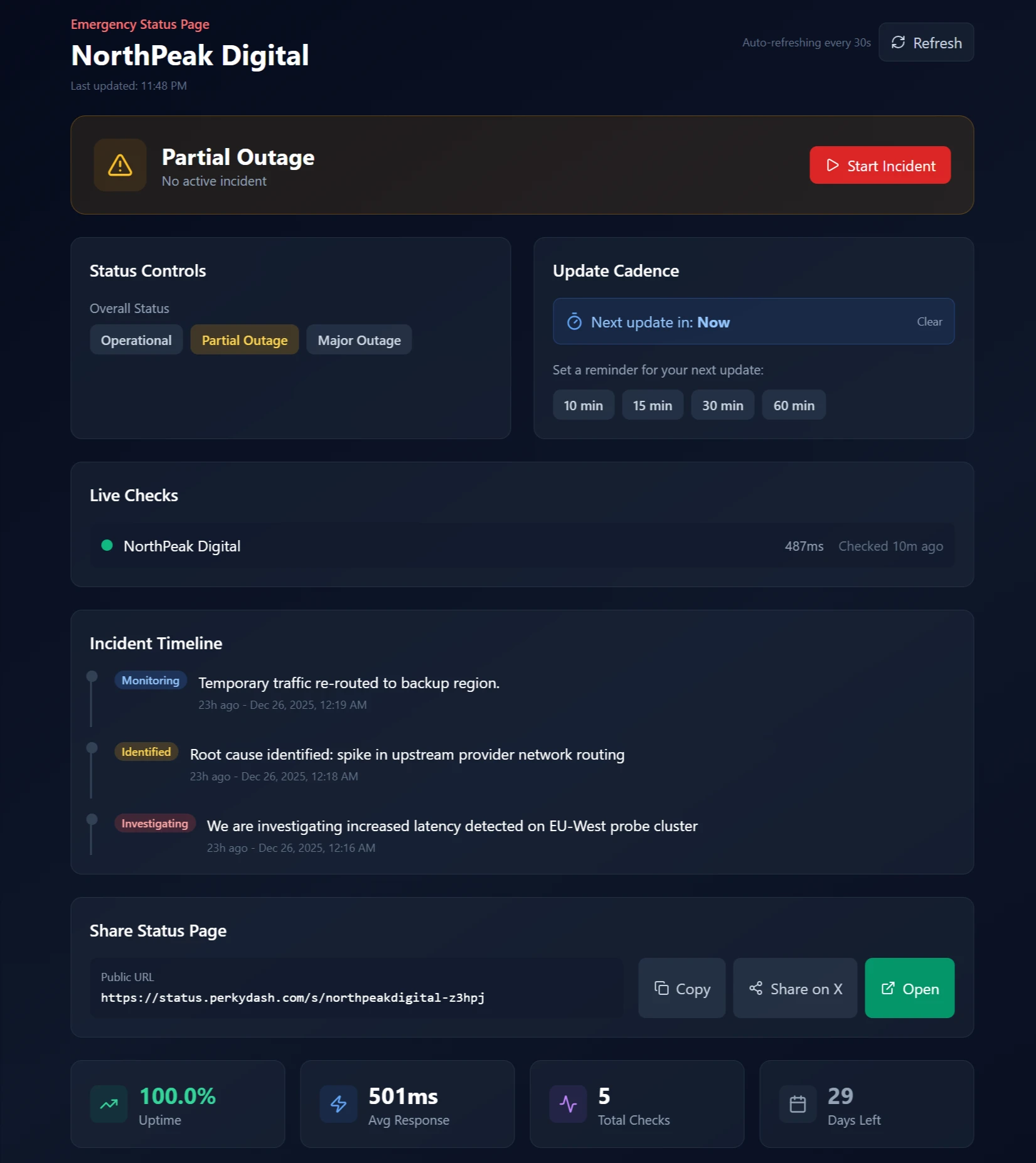 Publish an emergency status page in seconds